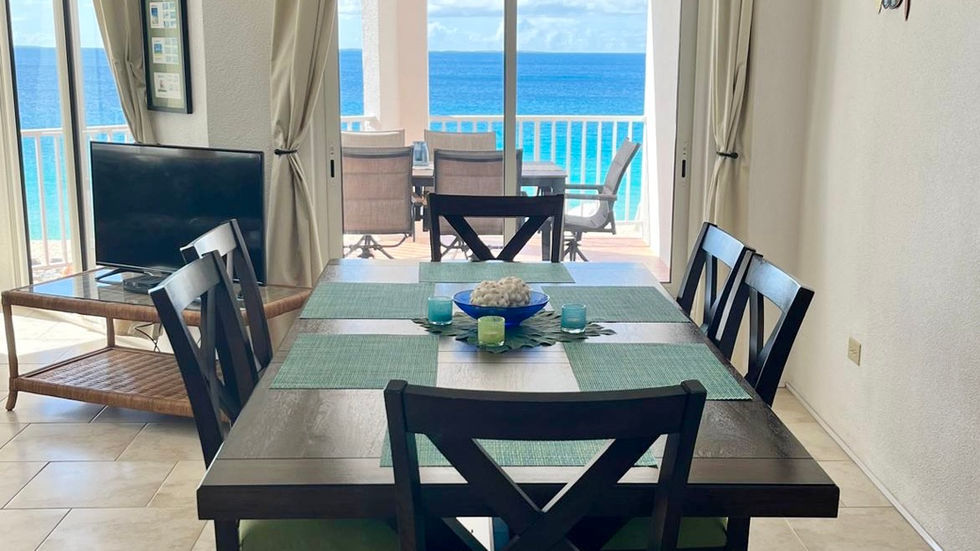 Oceanfront balcony with dining table and chairs